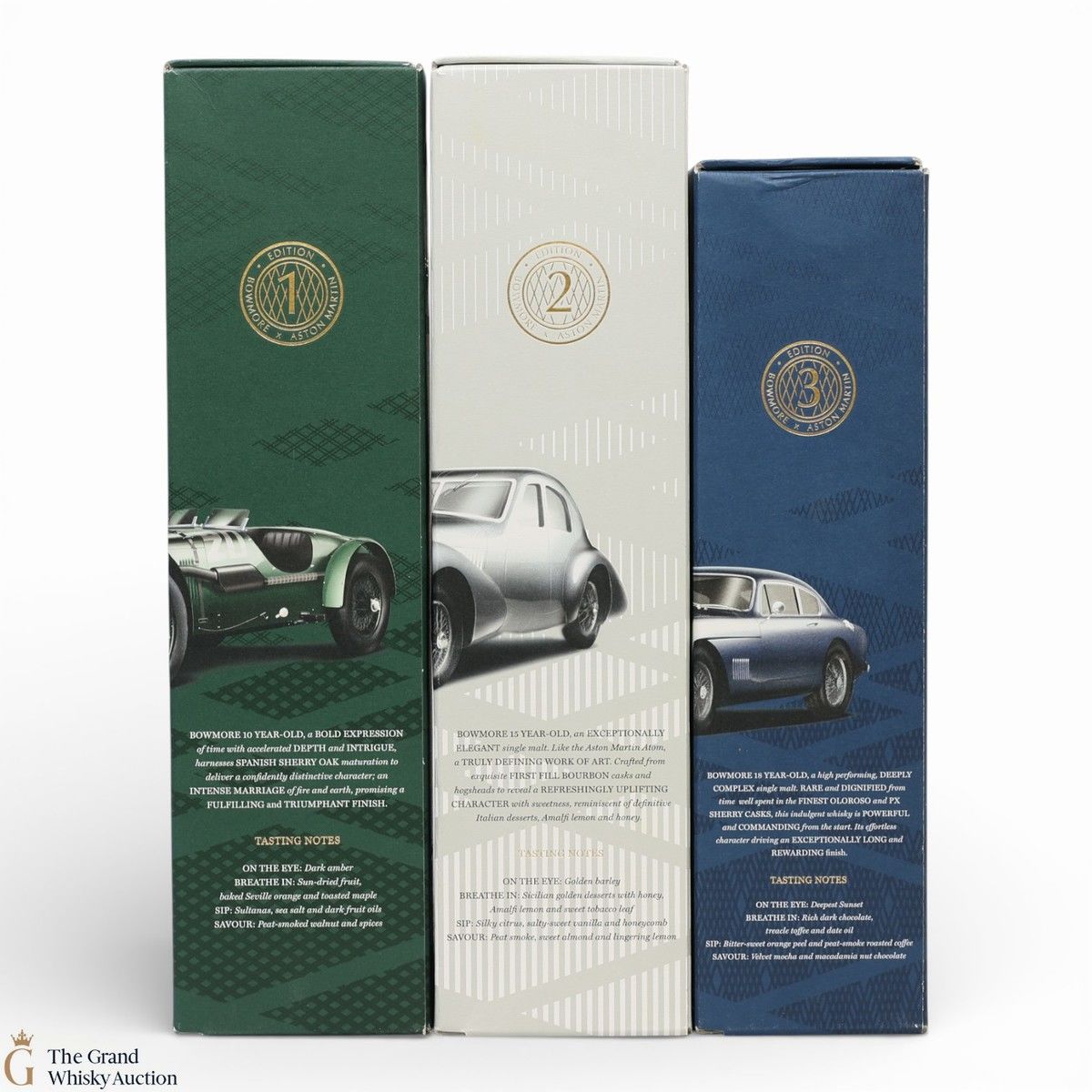 Bowmore - 15 Year Old - Aston Martin Edition 2 (1L): Edition 2 of the Bowmore x Aston Martin collaboration celebrates the iconic Aston Martin 1939 Atom. A working concept car, iconic and definitive for its time. A great pairing for the golden and elegant 15 Year Old, married in 1st fill bourbon casks to create a refreshing, silky peat-smoked character with notes of citrus. Bottled at 43% ABV.