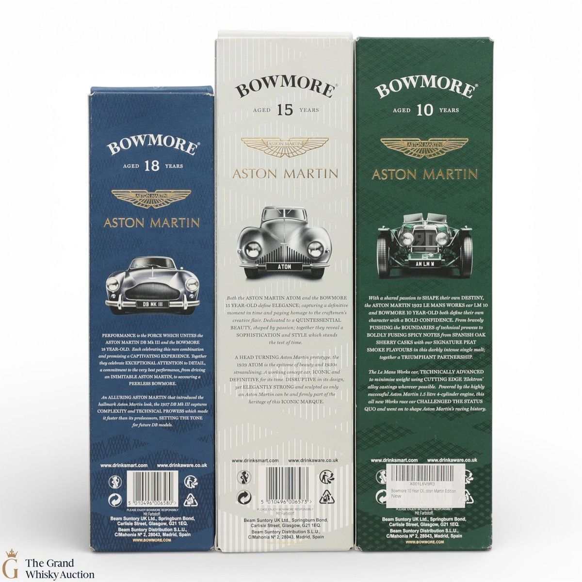 Bowmore - 18 Year Old - Aston Martin Edition 3: Edition 3 of the Bowmore x Aston Martin collaboration celebrates the iconic Aston Martin DB Mk III. Capturing complexity and technical prowess, making it faster than its predecessors. A great pairing for the deep and complex 18-year-old, rich maturity from the depths of Oloroso and Pedro Ximenez sherry casks. Bottled at 43% ABV.