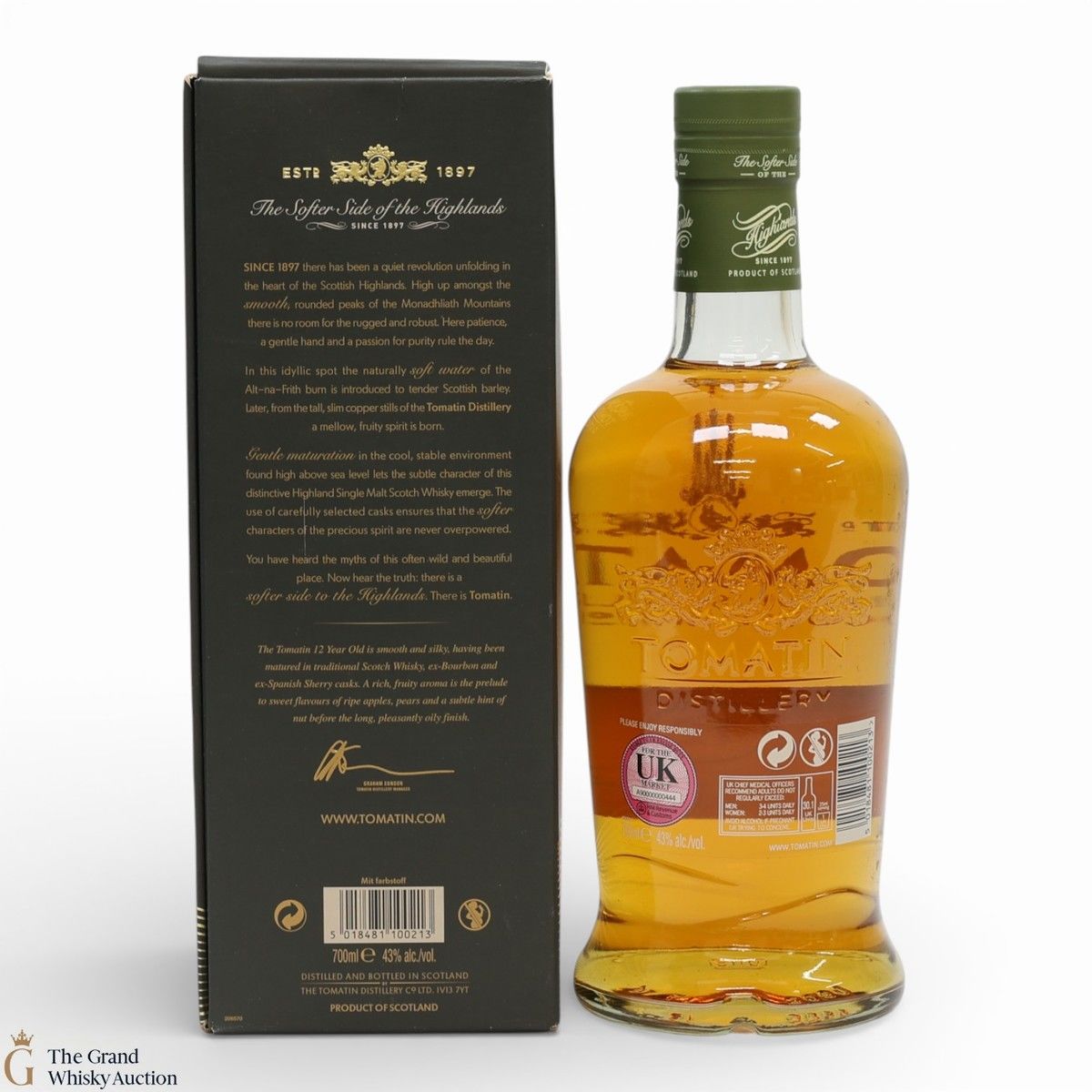 Due to the various ages of bottles and their seals, the condition of liquid is at the buyer's discretion and no claim can be lodged against failure/leakage in transit. Loss and breakage cover is available at 3% of the hammer price as standard. If the lot is not insured, no claim can be lodged against the courier or The Grand Whisky Auction for breakage or loss in transit.