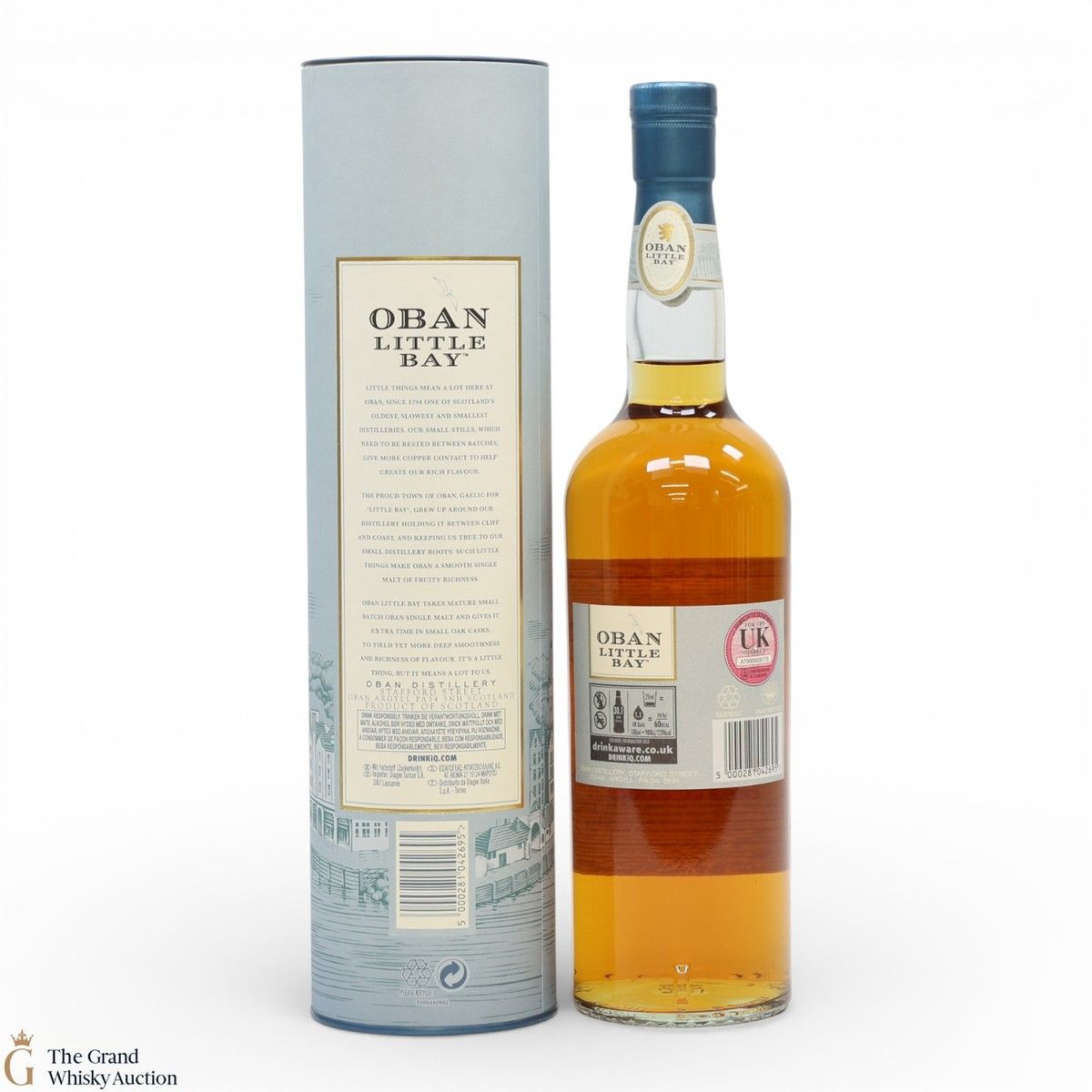 Oban Little Bay then matured in refill American oak hogsheads, European oak Sherry casks and refill casks with new ends before being married in the smallest casks available at the distillery, 200-litre ex-bourbon barrels.