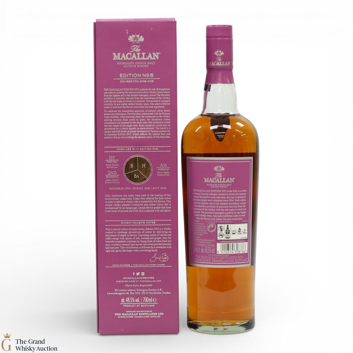 The fifth release in the Edition Series from The Macallan, The Macallan Edition No. 5 celebrates The Macallan’s extensive natural colour spectrum and the intricate whisky-making process, in partnership with masters at the Pantone Color Institute™ to create a unique shade of purple that features on the packaging.