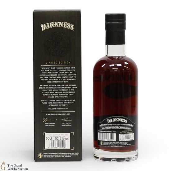 This Darkness independent release of a 24-year-old Caperdonich single malt. There was a finishing period in a PX cask! The smaller cask is said to increase the interaction between the whisky and the cask.