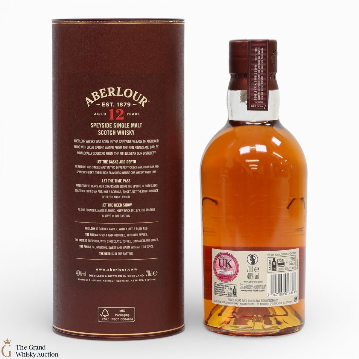 This Aberlour 12 Year Old, has been double cask matured in two handmade oak cask types. The double maturation of both traditional oak and sherry casks adds depth of character to this single malt, now bottled at 40% abv.