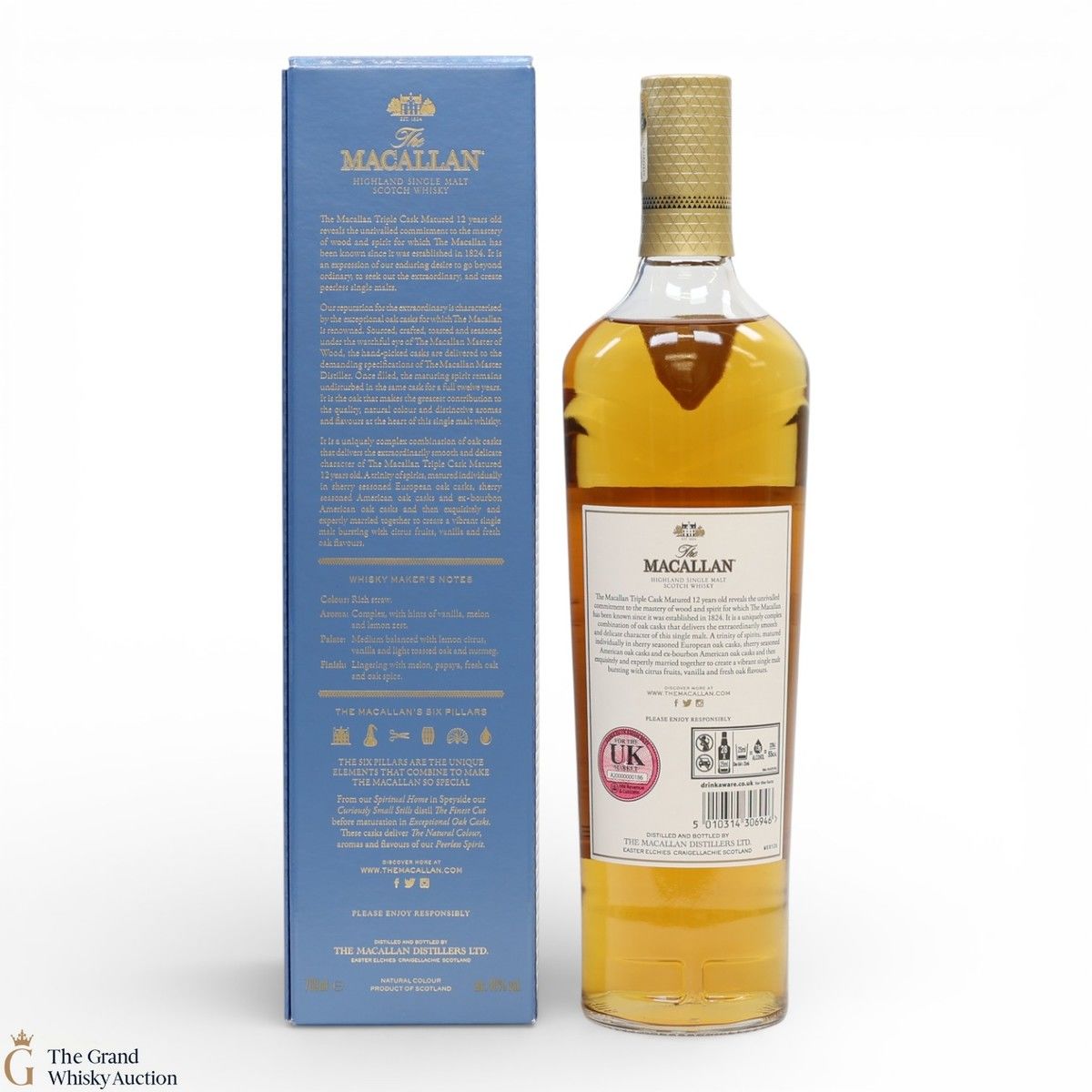 The 12 year old single malt was matured for 12 years and drawn from a combination of European sherry seasoned casks, American sherry seasoned casks and American ex-bourbon casks. It is part of Macallan's Triple Cask range which was launched in 2018, taking the place of the Fine Oak range.