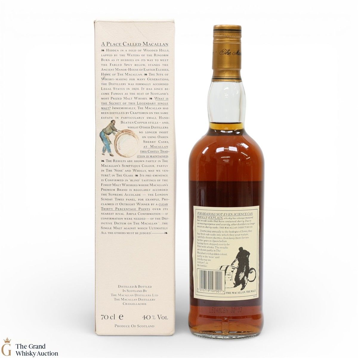 This single malt was distilled at the world-renowned distillery, Macallan, known for its sherry-seasoned cask finishes. It matured for a total of 10 years in sherry casks before being bottled in the 1990s.