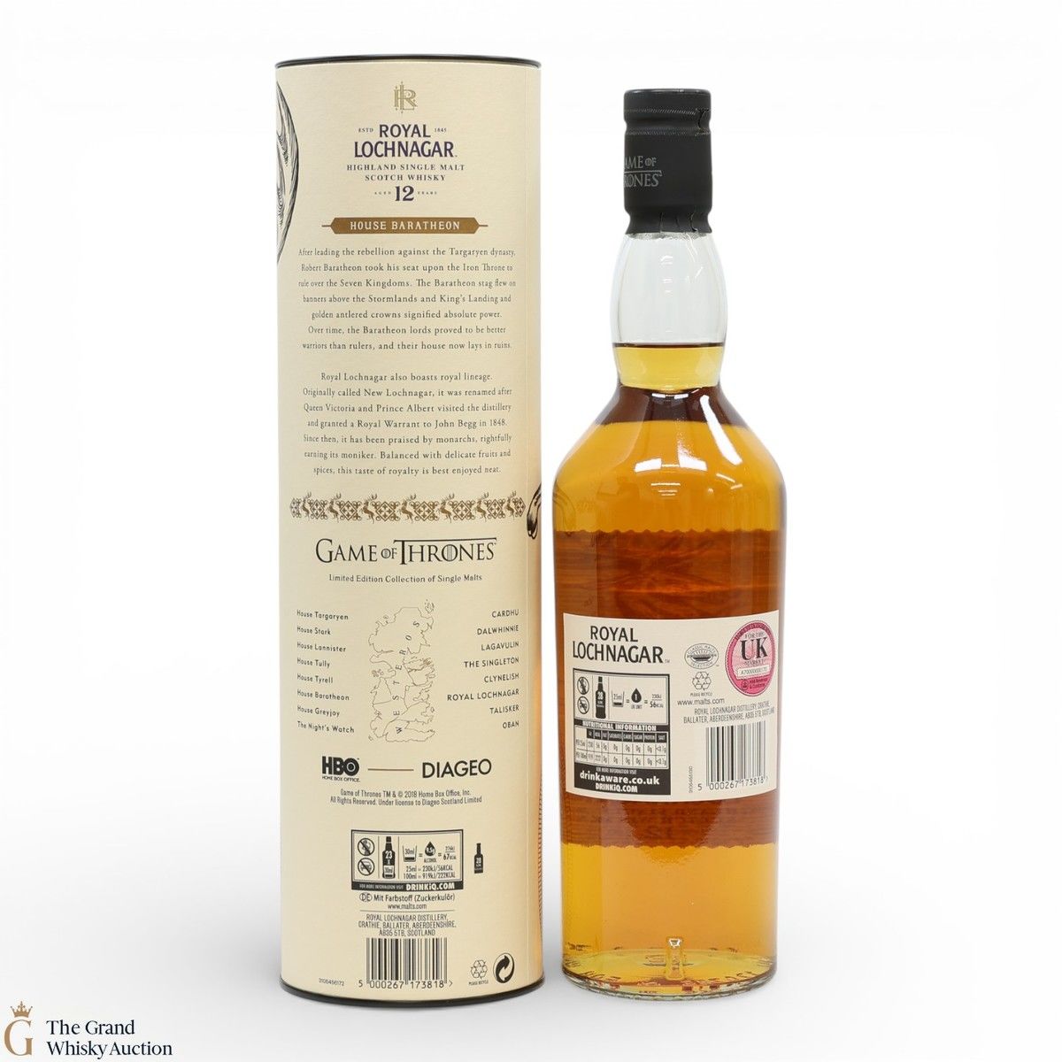 This is a limited-edition 12 year old single malt from Royal Lochnagar and it is part of Diagio's 2018 collaboration with HBO. Each single malt in the series relates to the land of houses of the Game of Thrones television series. The Royal Lochnagar bottle is decorated with a rampant black Stag, the sigil of House Baratheon that once flew on banners above the Stormlands and King’s Landing signifying absolute power.