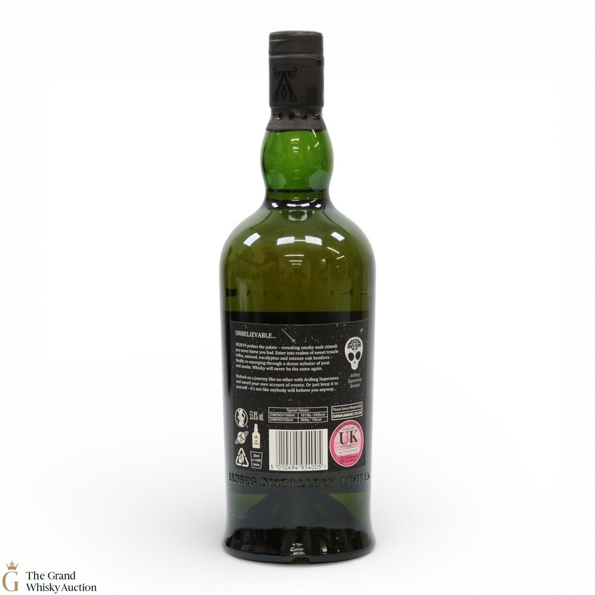 Exclusively released to Ardbeg Committee members in September 2019, this is the fifth and latest release of the Ardbeg Supernova. Matured in ex-Bourbon casks, this limited edition, non-age- statement release is described as having aromas of ‘pungent aniseed, menthol and eucalyptus’, with a ‘nebula of bonfires, soot, charred oak, birch tar and menthol’ on the palate.