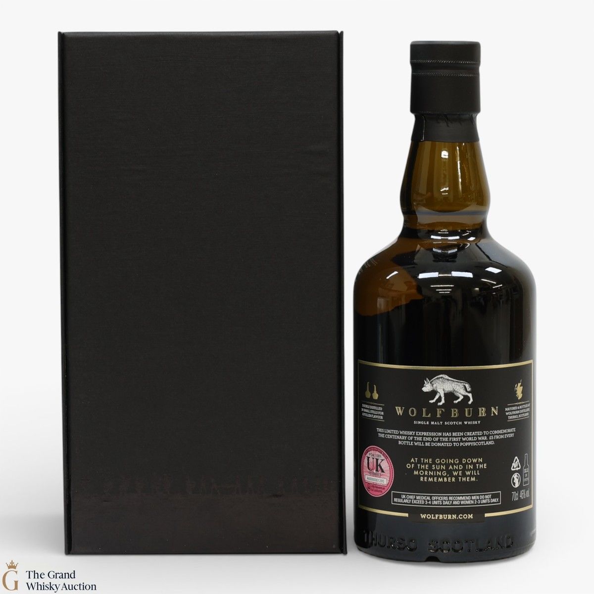 A limited edition from Wolfburn Distillery to commemorate the 100th anniversary of the end of The First World War. A total of 1918 bottles were produced and sold exclusively from the distillery and through the Carnegie Whisky Cellars in Dornoch. This project is important to both companies and was proposed to Wolfburn Distillery due to the owners of Wolfburn being former British Servicemen and the importance of the Poppy Appeal to all service personnel and their families.