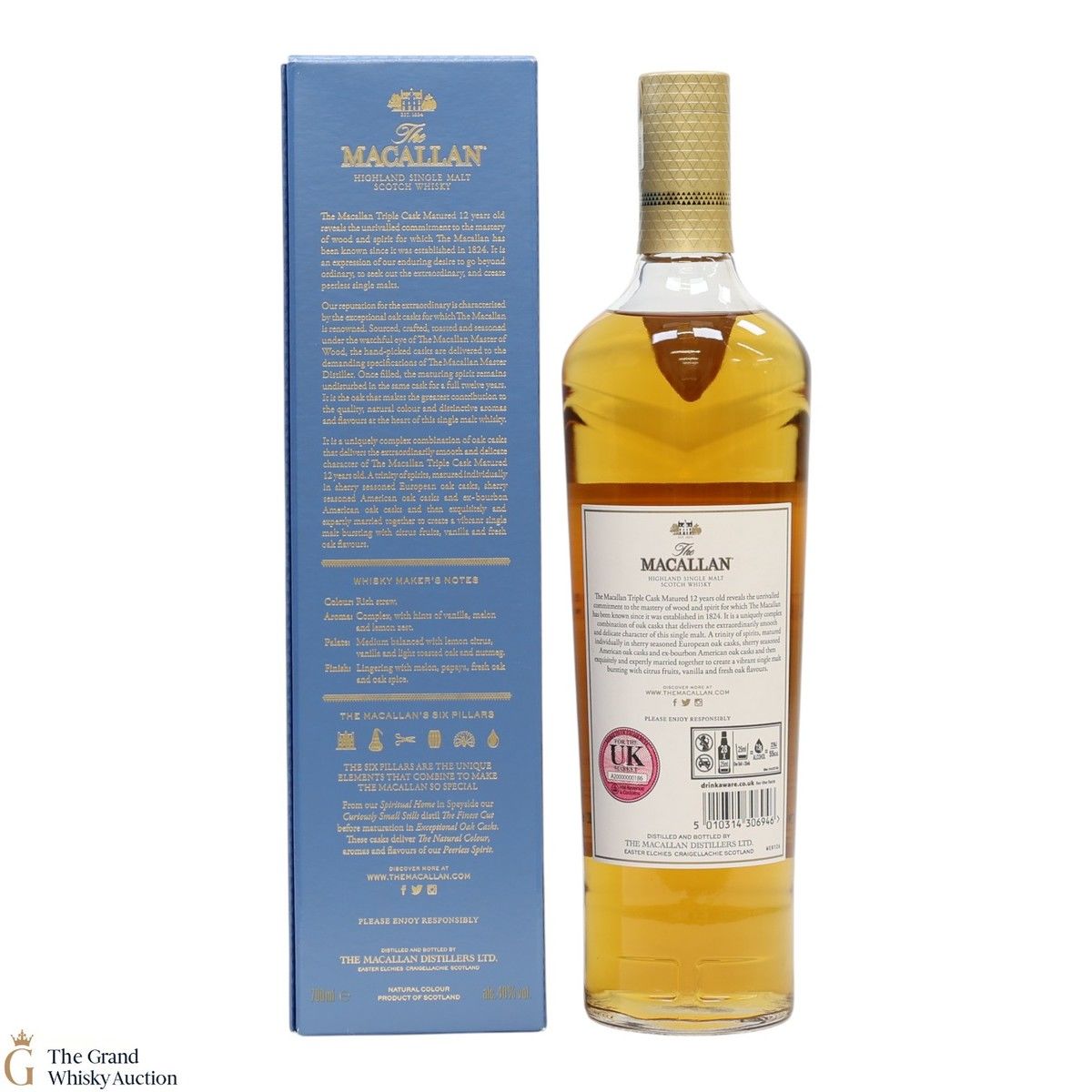 The 12 year old single malt was matured for 12 years and drawn from a combination of European sherry seasoned casks, American sherry seasoned casks and American ex-bourbon casks. It is part of Macallan's Triple Cask range which was launched in 2018, taking the place of the Fine Oak range.