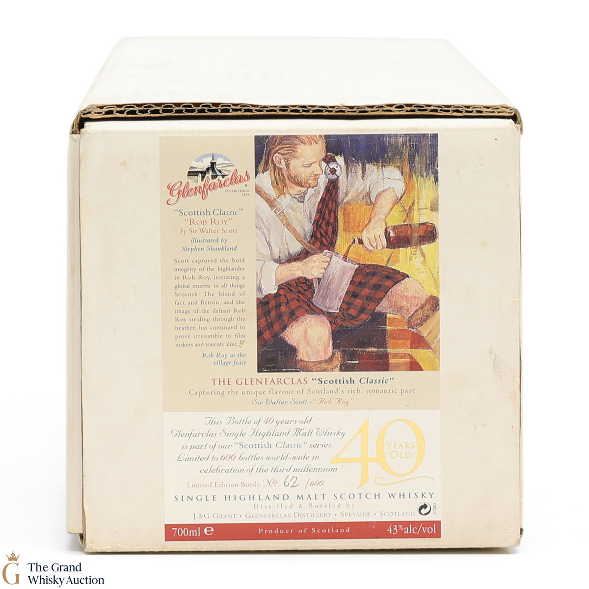 This bottle of 40-year-old Glenfarclas single Highland malt whisky is part of the Glenfarclas "Scottish Classic" series. Limited to 600 bottles worldwide in celebration of the third millennium.