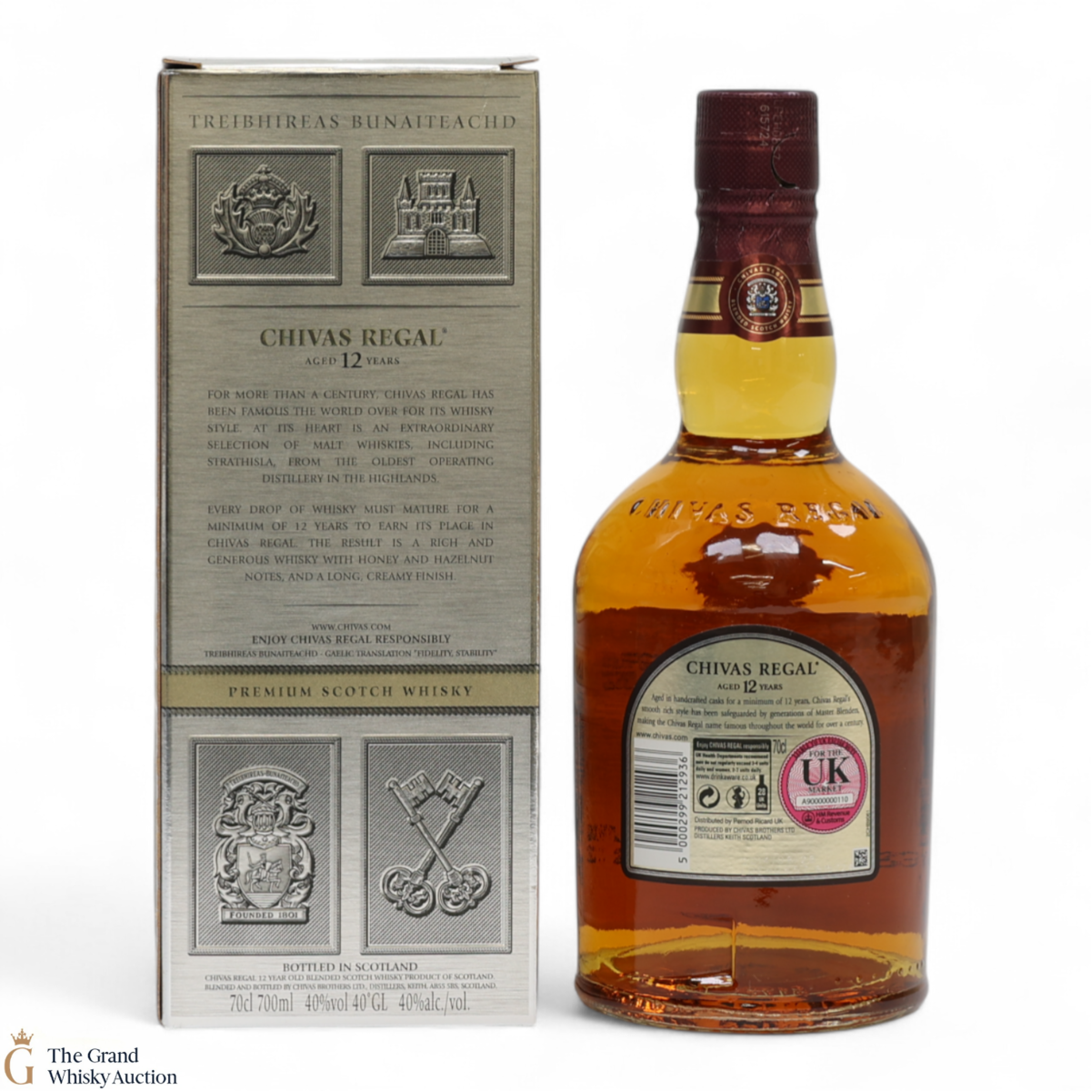 Chivas 12 Year Old is a multi-award-winning premier scotch whisky, an artful blend of many different malt and grain scotch whiskies, matured for at least 12 years.