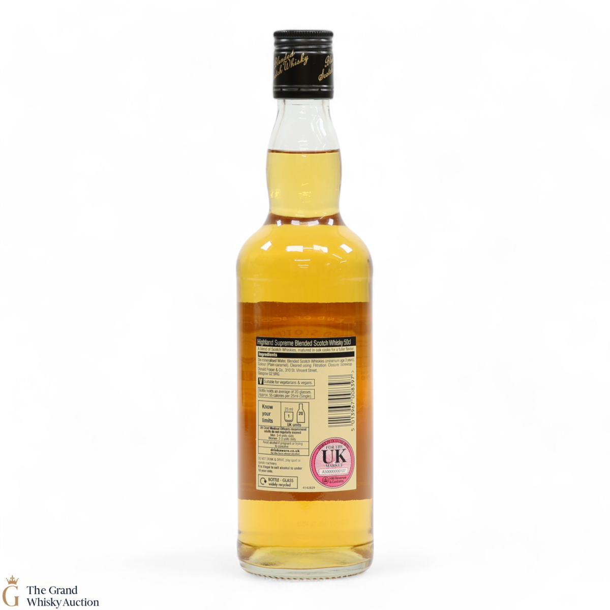 Due to the various ages of bottles and their seals, the condition of liquid is at the buyer's discretion and no claim can be lodged against failure/leakage in transit. Loss and breakage cover is available at 3% of the hammer price as standard. If the lot is not insured, no claim can be lodged against the courier or The Grand Whisky Auction for breakage or loss in transit.