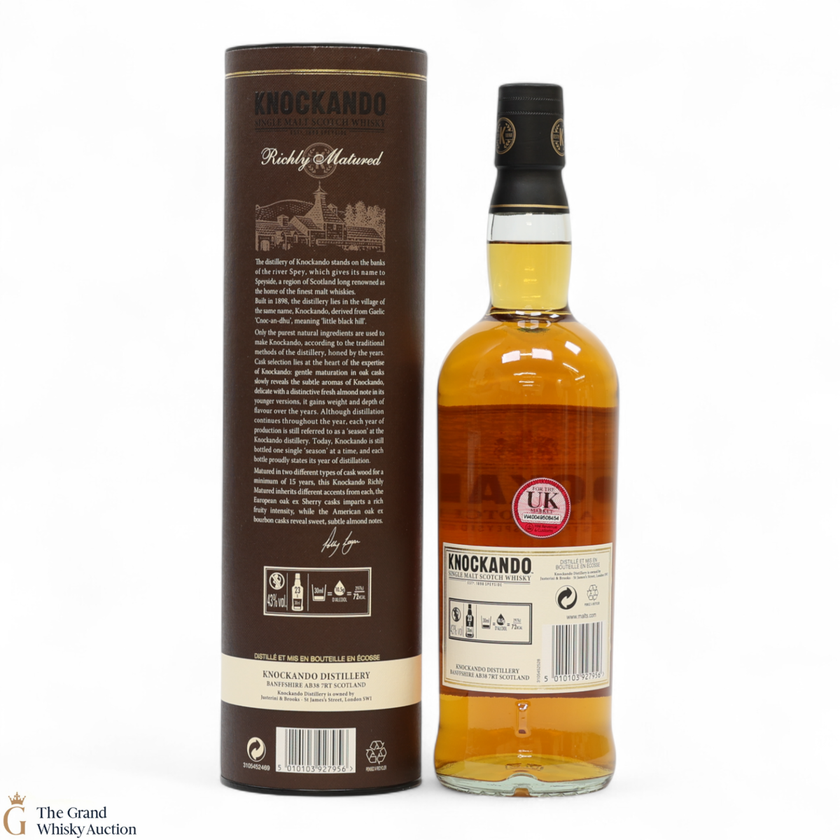 Knockando in Gaelic means 'little black hill'. The Knockando distillery is based in Speyside, Scotland. This single malt was distilled in 2003 before being left to mature for 15 years before being bottled at an ABV of 43%.