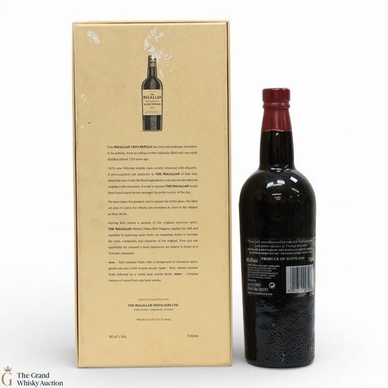 This eye-catching Macallan Replica was modelled on a bottle from the Victorian era. This is the second release in the Replica range and is said to be inspired by the discovery of two pre-20th century casks of Macallan. It is rich in summer fruits, both fresh/citric and dried, with traces of spice. Light vanilla fudge, sweet oak and wood spice. This bottle comes in a presentation box, with a stunning red velvety lining.