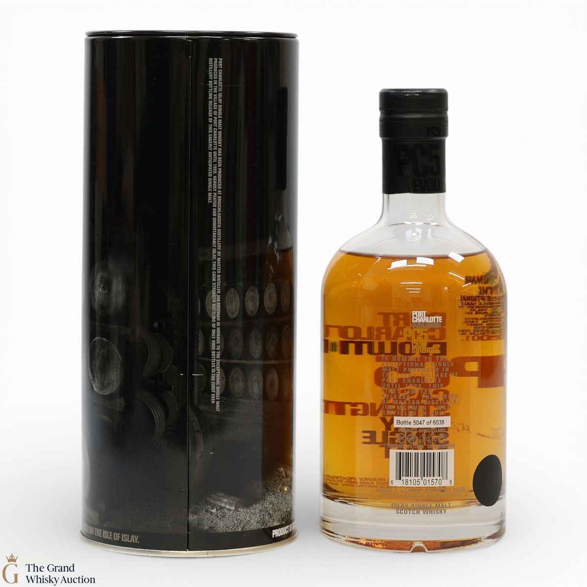 This was the first release of heavily peated Port Charlotte from Bruichladdich distillery. Produced in 2001 from some of the first spirits to be produced after Port Charlotte's reopening. This cask strength bottling was the vision of master distiller Jim Mcewan in homage to the excellent single malt produced in the village of Port Charlotte until 1929. It was matured in both bourbon and sherry casks. This 5 year old release was limited to 6,038 individually numbered bottles.