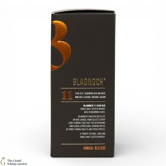 This Lowlander single malt spent over a decade maturing exclusively in ex-bourbon casks before it was bottled without chill filtering at 11 years old as the Bladnoch 2021 Annual Release.