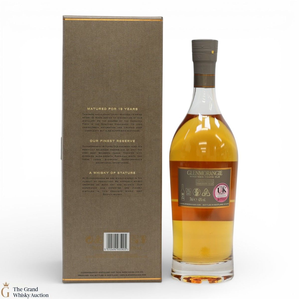 Due to the various ages of bottles and their seals, the condition of liquid is at the buyer's discretion and no claim can be lodged against failure/leakage in transit. Loss and breakage cover is available at 3% of the hammer price as standard. If the lot is not insured, no claim can be lodged against the courier or The Grand Whisky Auction for breakage or loss in transit.