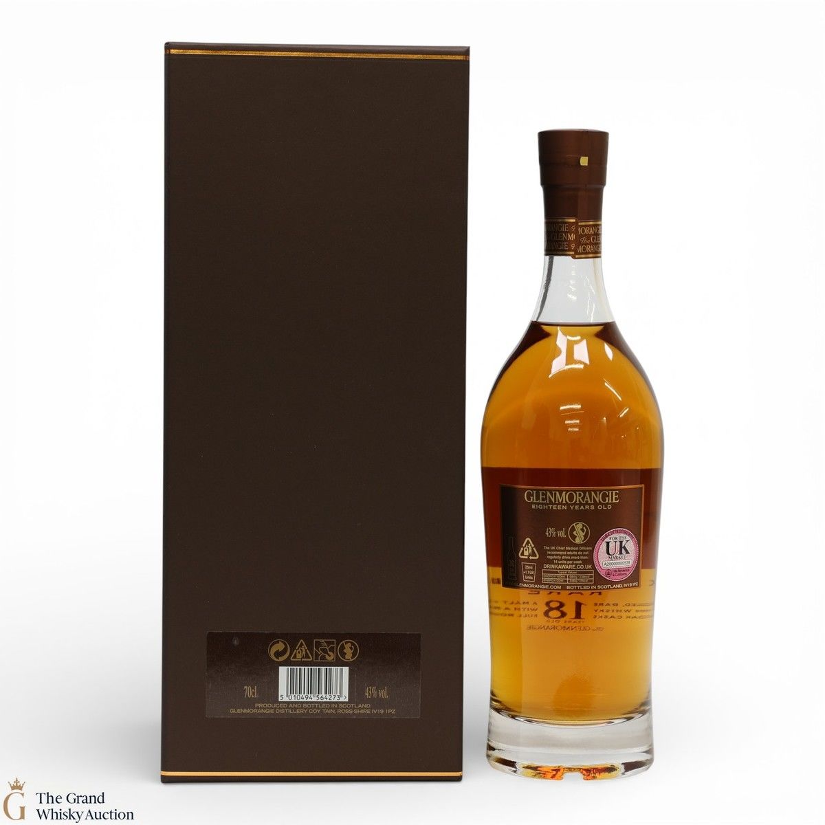 This bottle is an 18-year-old Extremely Rare, Highland single malt produced by Glenmorangie. It has been perfected by the sixteen men of Tain who have specially aged this bottle for 18 years in superior oak casks.