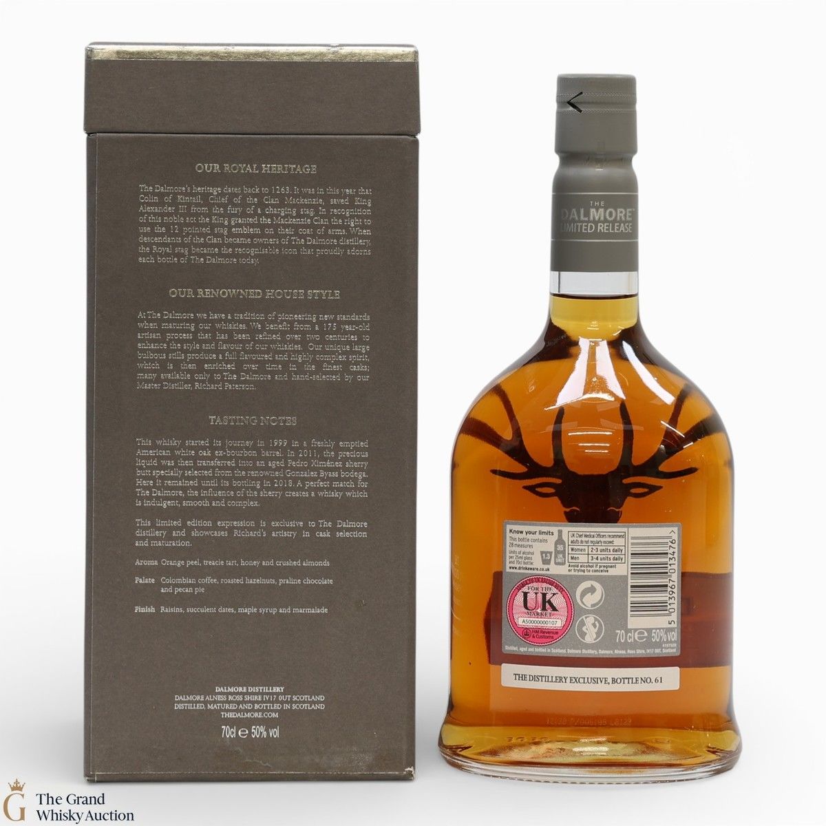 Due to the various ages of bottles and their seals, the condition of liquid is at the buyer's discretion and no claim can be lodged against failure/leakage in transit. Loss and breakage cover is available at 3% of the hammer price as standard. If the lot is not insured, no claim can be lodged against the courier or The Grand Whisky Auction for breakage or loss in transit.
