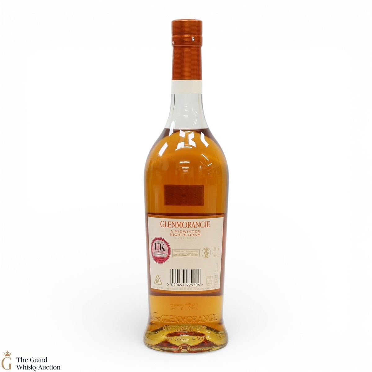 Due to the various ages of bottles and their seals, the condition of liquid is at the buyer's discretion and no claim can be lodged against failure/leakage in transit. Loss and breakage cover is available at 3% of the hammer price as standard. If the lot is not insured, no claim can be lodged against the courier or The Grand Whisky Auction for breakage or loss in transit.