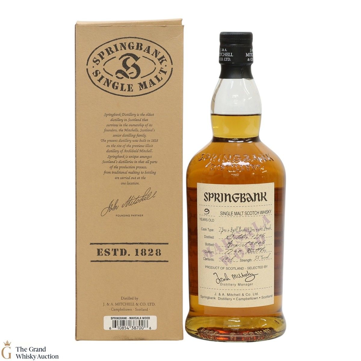 This single malt was distilled at the Springbank Distillery in 1996 and matured in a refill bourbon cask for 7 years. It was then transferred into fresh marsala wood for a further 2 years.