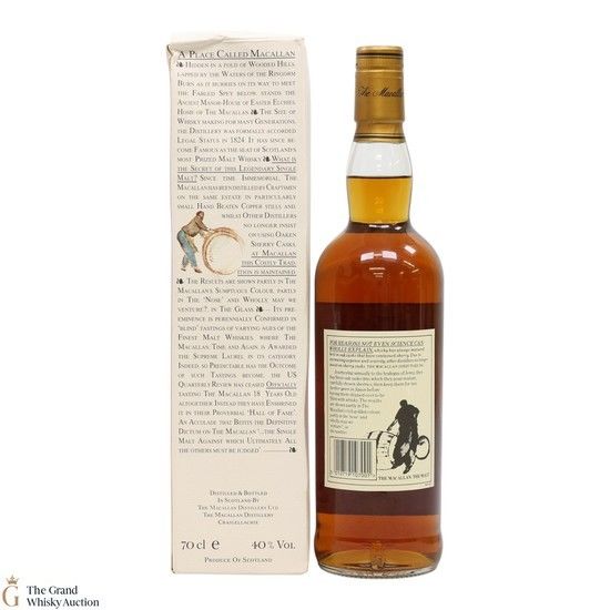 This single malt was distilled at the world-renowned distillery, Macallan, known for its sherry-seasoned cask finishes. It matured for a total of 10 years in sherry casks before being bottled in the 1990s.