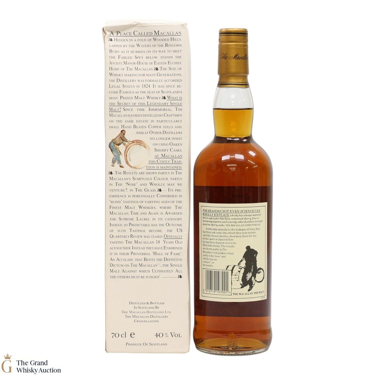 This single malt was distilled at the world-renowned distillery, Macallan, known for its sherry-seasoned cask finishes. It matured for a total of 10 years in sherry casks before being bottled in the 1990s.