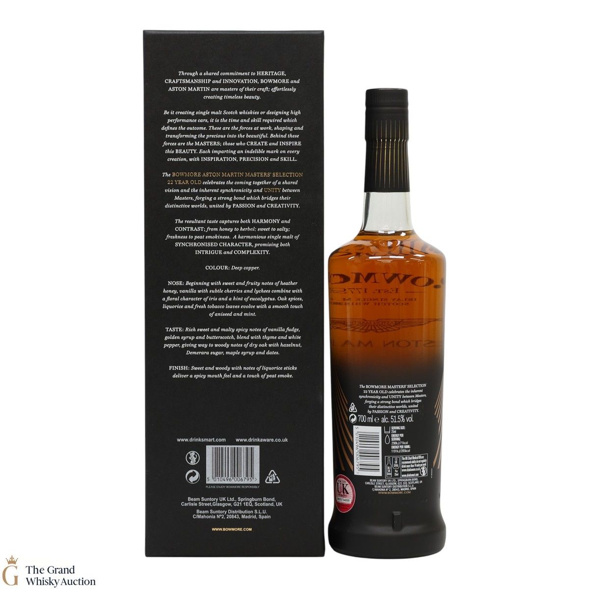 This 22-Year-Old Bowmore is a limited-edition single malt created in collaboration between Ron Welsh, Bowmore Master Blender, and Marek Reichman, Aston Martin Chief Creative Officer. Matured in a combination of American oak hogsheads and sherry butts. The result is a single malt that thrills all the senses for optimal enjoyment.