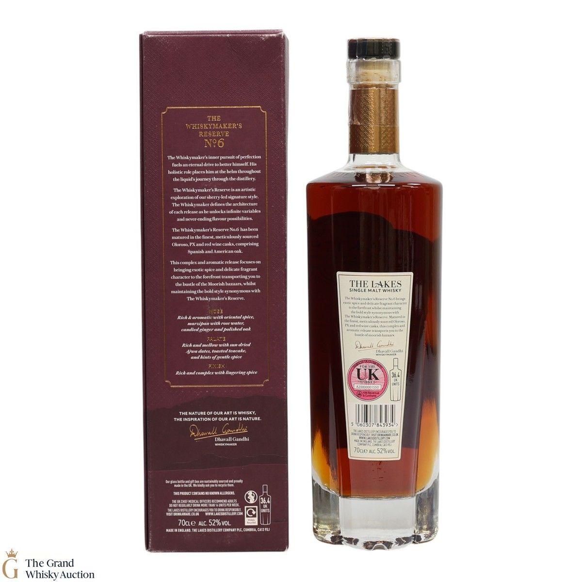 The Lakes Distillery Whiskymaker's Reserve No.6 has been matured in a combination of oloroso sherry, Pedro Ximenez sherry, and red wine casks, made with Spanish and American oak.
