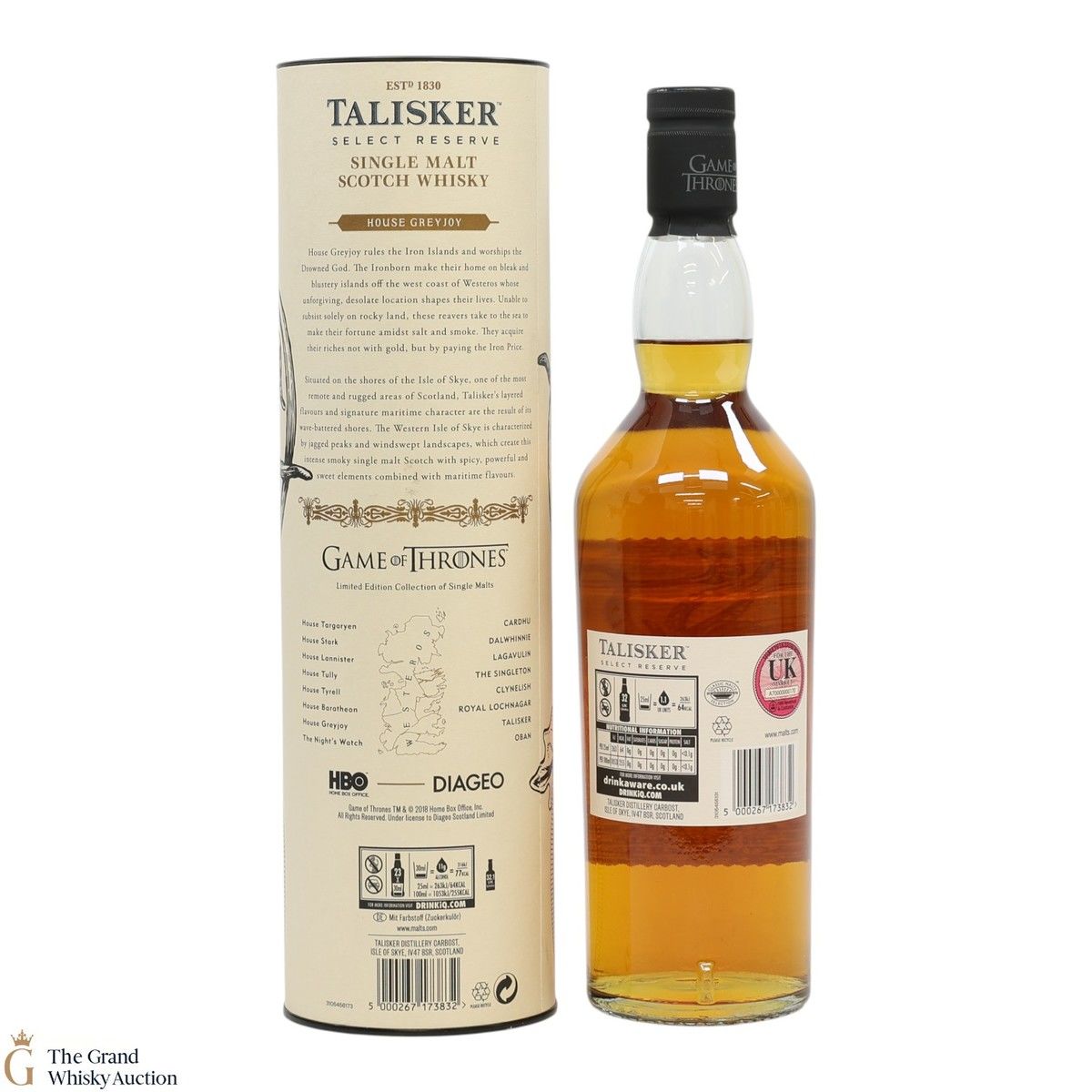 Part of the Game of Thrones Single Malts Collection - Talisker, a coastal distillery with signature maritime character, has been perfectly paired with House Greyjoy, which rules over the Iron Islands and worships the Drowned God.