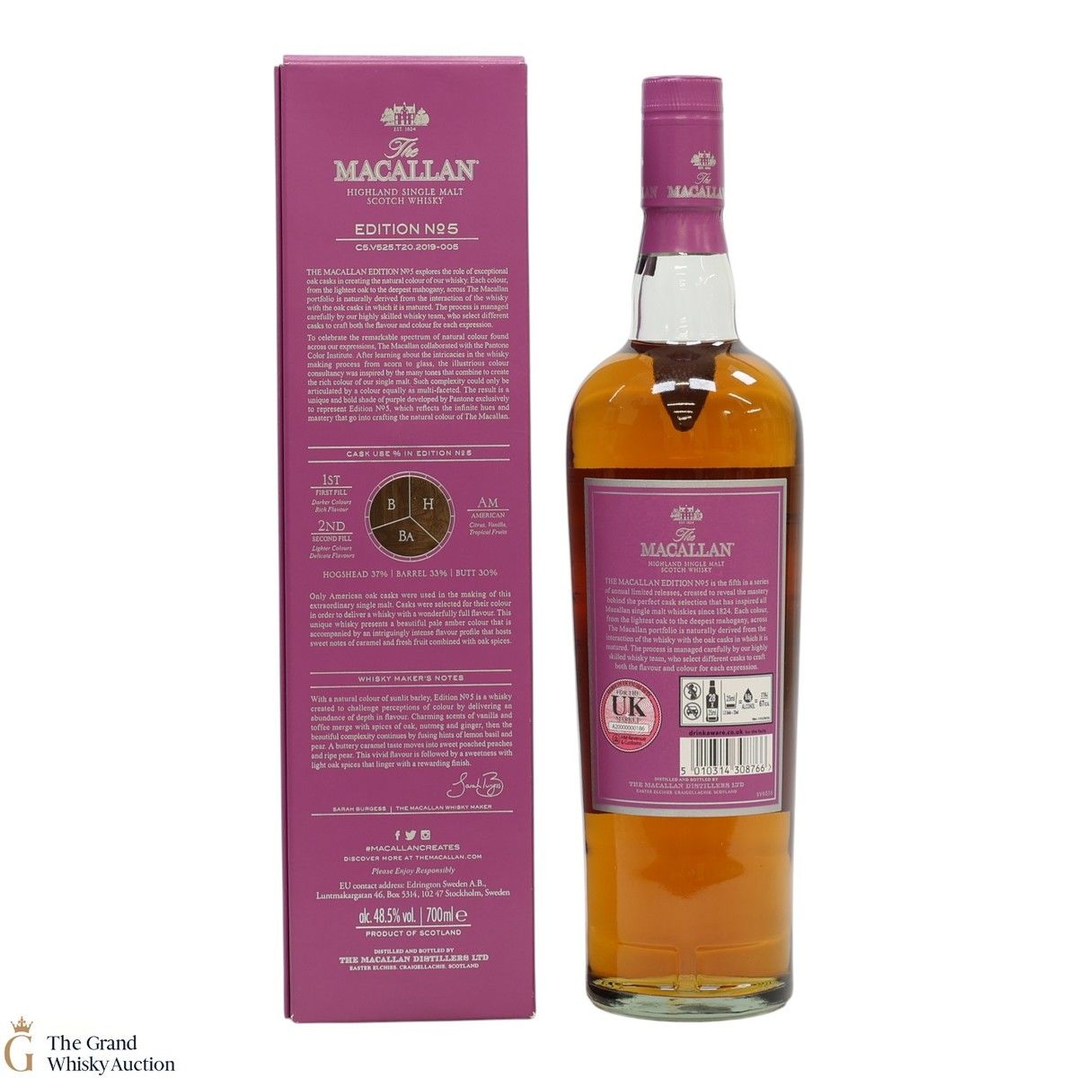 The fifth release in the Edition Series from The Macallan, The Macallan Edition No. 5 celebrates The Macallan’s extensive natural colour spectrum and the intricate whisky-making process, in partnership with masters at the Pantone Color Institute™ to create a unique shade of purple that features on the packaging.