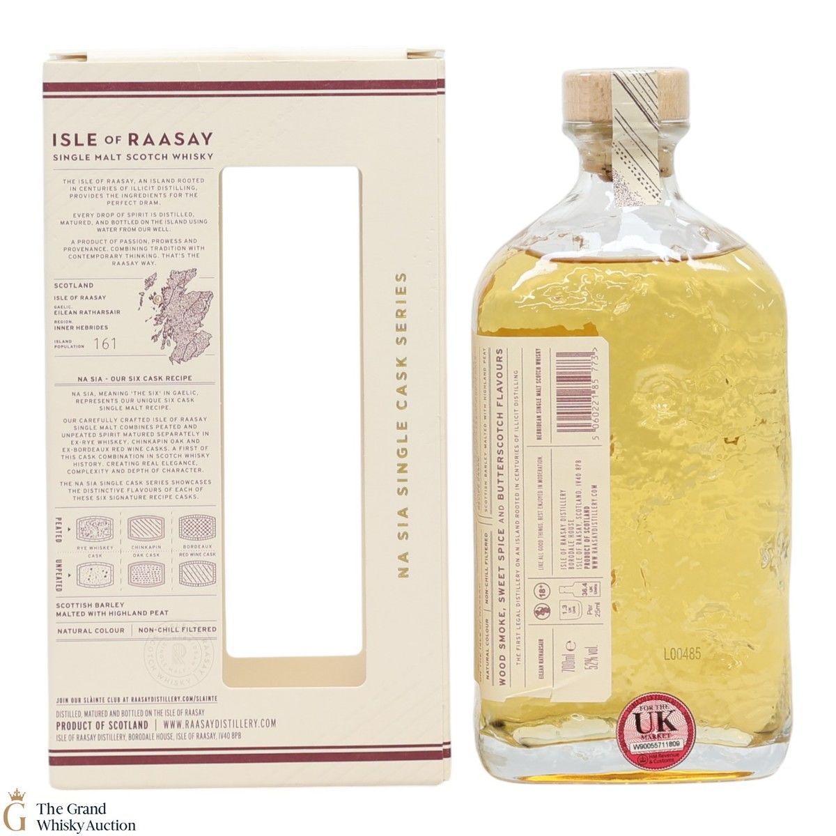 This Raasay single cask is from their Na Sia series created to show the distinctive styles and characteristics of the 6 Isle of Raasay single malt recipe casks. Matured in a peated ex-rye cask before being bottled free from chill-filtration and artificial colourings at 52% abv.