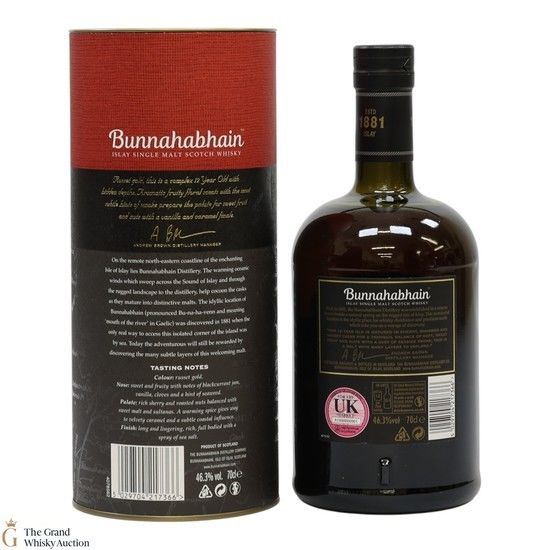 Situated on the Isle of Islay, Bunnahabhain Distillery was founded in 1881 and relied on the sea trade, receiving supplies by boat and sending seafarers back to the mainland with casks full of their special whisky. In the 1930s Bunnahabhain had a short closure before a new road was built to the distillery in 1960, adding another form of transport link to obtain supplies. Due to the increasing demand, a second pair of stills were installed at the distillery in 1963 and by 1979, the classic 12-year-old single malt was introduced worldwide. 1993 saw the last boat being docked as the road to the distillery was now the most suitable route for receiving ingredients and supplies. In the new decade, Burn Stewart merged with Distell which brought more investment into the brand and distillery, Bunnahabhain’s portfolio of products was extended and the packaging was further modernised, as well as a Visitor Centre which opened in 2021.