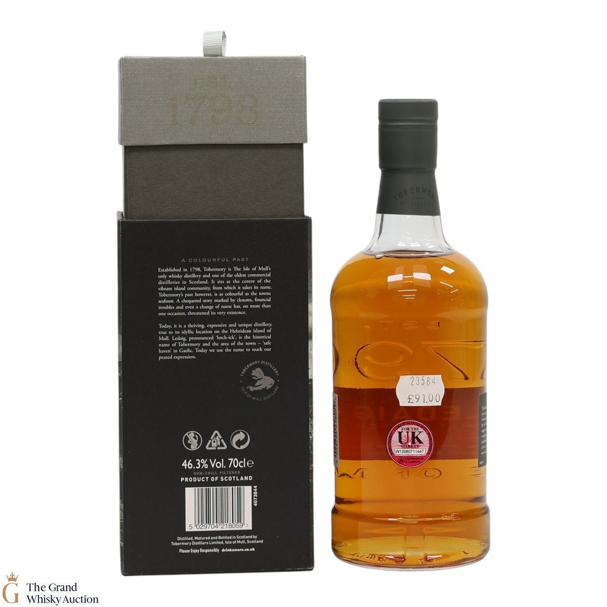 Due to the various ages of bottles and their seals, the condition of liquid is at the buyer's discretion and no claim can be lodged against failure/leakage in transit. Loss and breakage cover is available at 3% of the hammer price as standard. If the lot is not insured, no claim can be lodged against the courier or The Grand Whisky Auction for breakage or loss in transit.