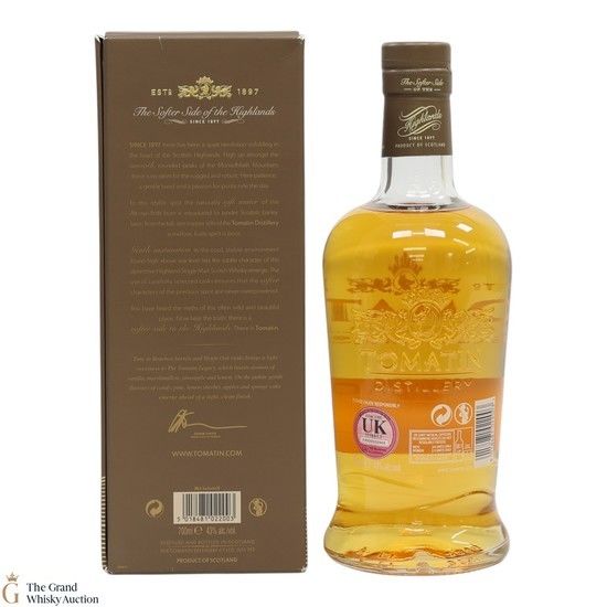 This is a no-age-statement release from Tomatin Distillery. Matured in Bourbon Barrels as well as Virgin Oak Casks before being bottled at an ABV of 43%.