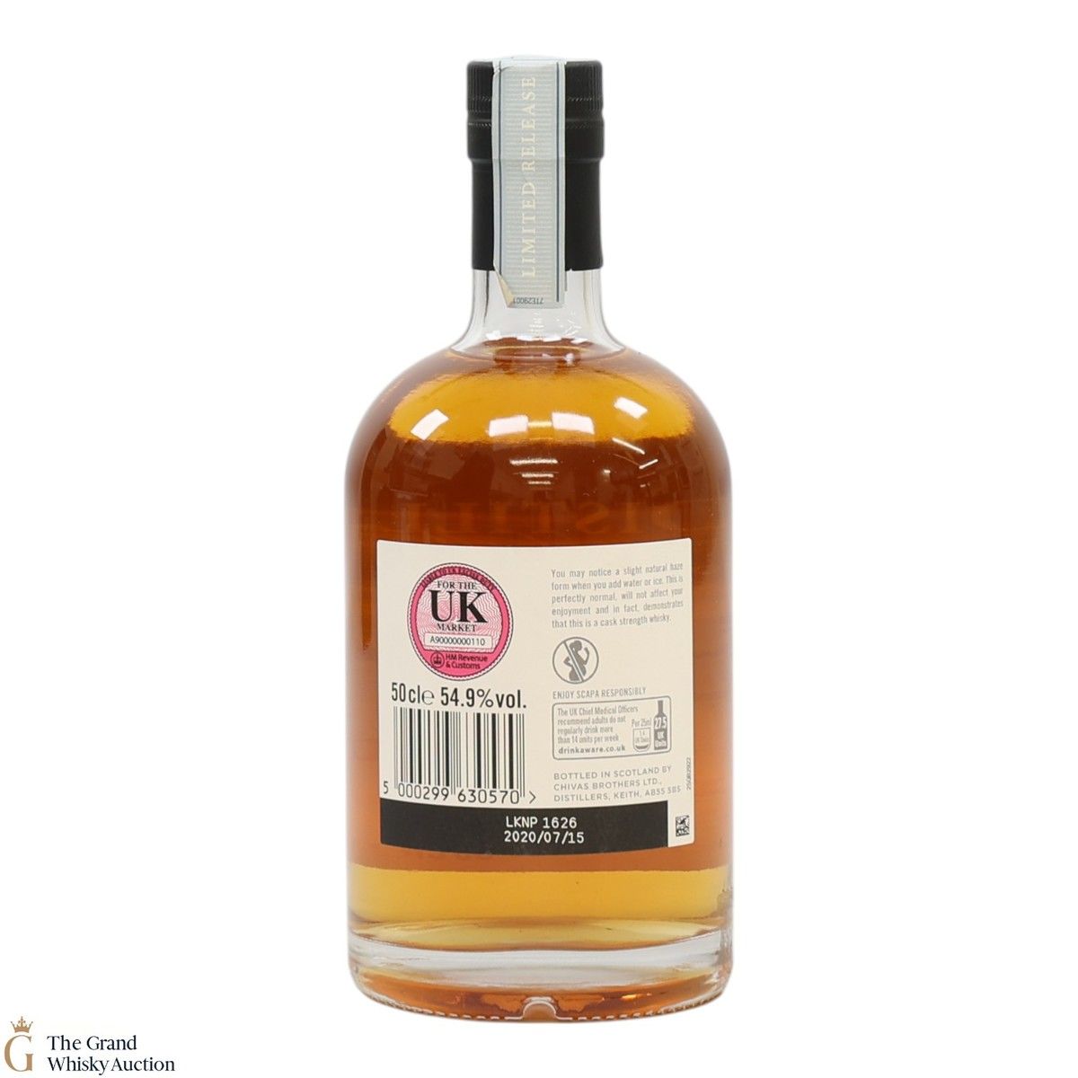This 16 year old Scapa is part of the Distillery Reserve Collection from Chivas Brothers' single malt whisky. This was distilled on the 25th of June 2003 and bottled from a single first-fill barrel in 2020. It was bottled at cask strength at 54.9% ABV.