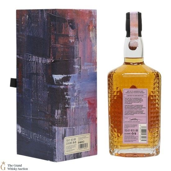The second release of The Art of St Andrews Collection features work by Mairi Clark, whose expressive painting of the St Andrews coastline features on the box. The 2022 limited edition whisky within has been matured in a combination of bourbon, Pedro Ximénez, and oloroso casks.