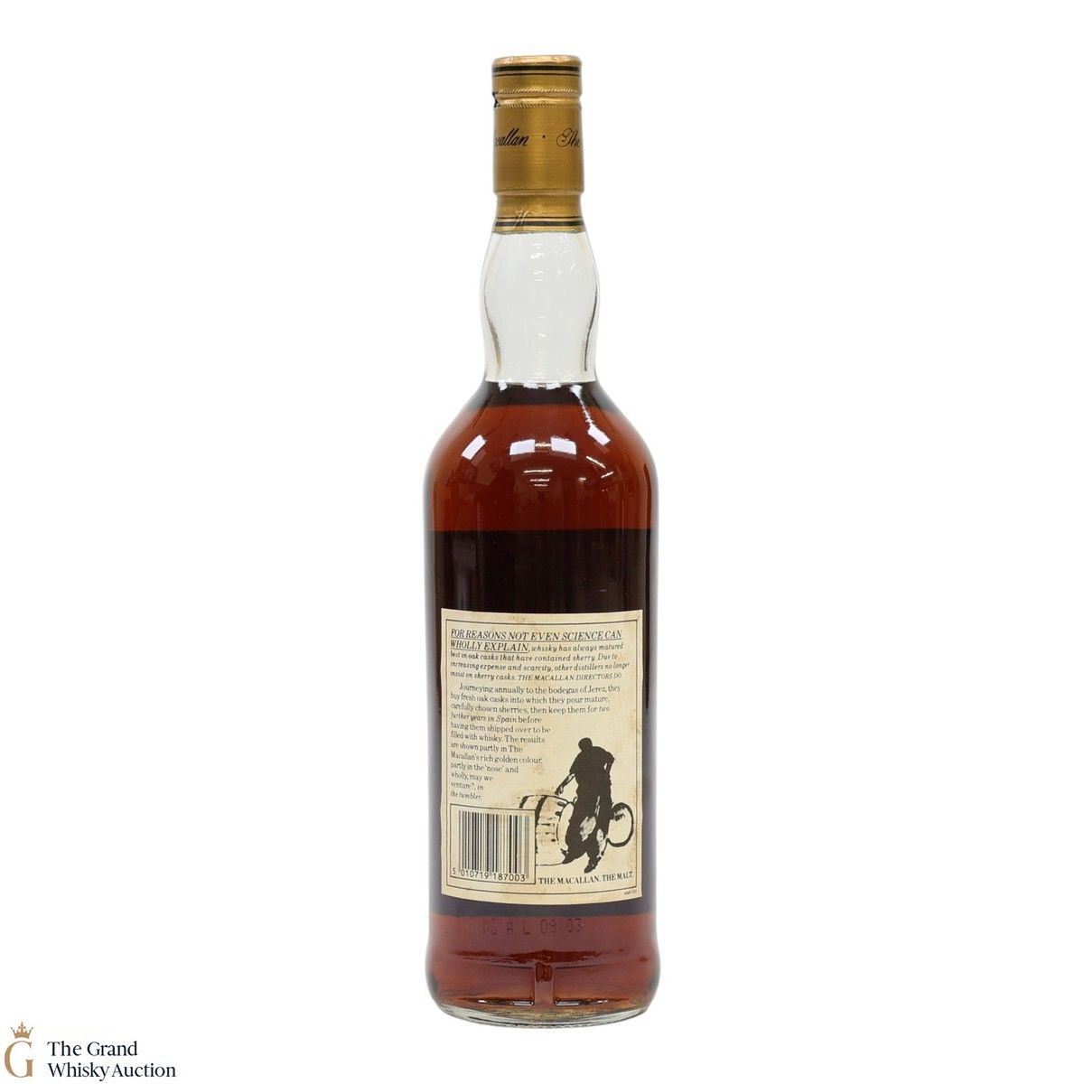 Due to the various ages of bottles and their seals, the condition of liquid is at the buyer's discretion and no claim can be lodged against failure/leakage in transit. Loss and breakage cover is available at 3% of the hammer price as standard. If the lot is not insured, no claim can be lodged against the courier or The Grand Whisky Auction for breakage or loss in transit.