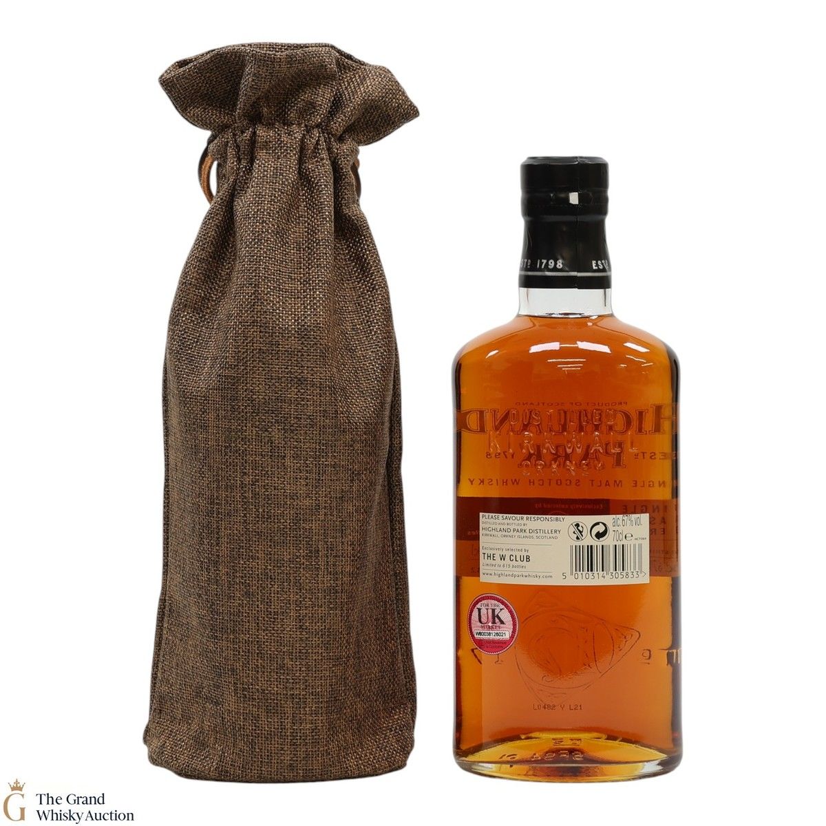 This bottling is part of Highland Park's Single Cask Series and was bottled exclusively for The W Club. Distilled in 2006, this single malt was matured for 11 years in first fill American Sherry Oak Puncheon #2132 and was bottled at the cask strength of 67% ABV. With only 615 bottles available, this is an extremely limited edition.