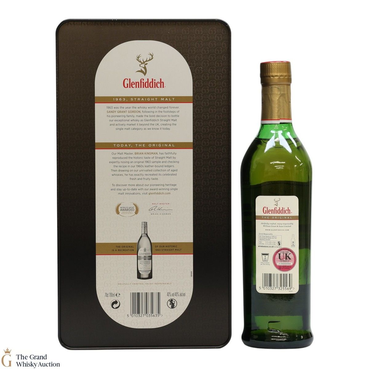 This is a limited edition release from Glenfiddich. The Original is based on Hamish Robertson's 1963 Straight Malt recipe, considered by many to be the world's first single malt. Presented in a bold premium black tin, this is a non-age statement single malt whisky bottled at 40% abv.