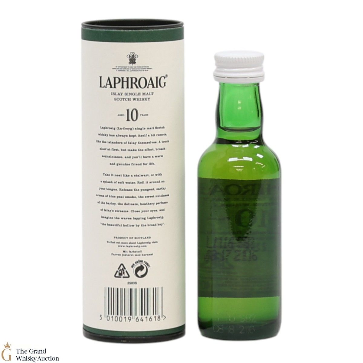 A 5cl of the medicinal 10 year old from Islay's bestselling distillery, Laphroaig. In making Laphroaig, malted barley is dried over a peat fire. The smoke from this peat, found only on Islay, gives Laphroaig its particularly rich flavour.