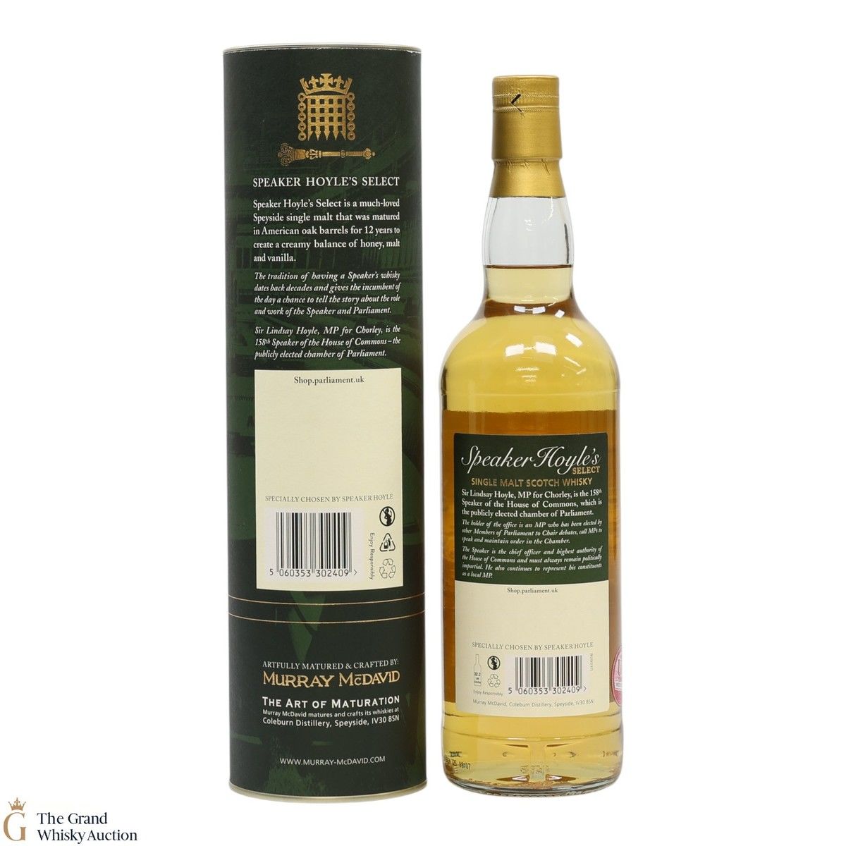 Speaker Hoyle’s Select is a 12-year-old single malt whisky from the Speyside region of Scotland, produced exclusively for the House of Commons by Murray McDavid. Matured in 1st fill Bourbon barrels.