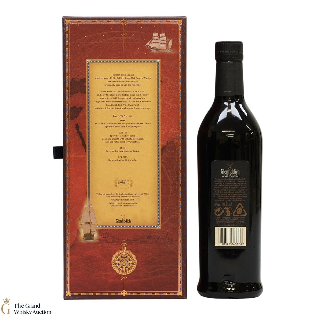 This is the third release in the Glenfiddich's Travel Retail Age of Discovery series. This is a 19 year old single malt Scotch whisky has been finished in South American red wine casks It was created to commemorate the 1831 voyage of the HMS Beagle, which travelled to South America so Charles Darwin could collect fossils, helping him with his theory of evolution. It is a rich, spicy and warm whisky.