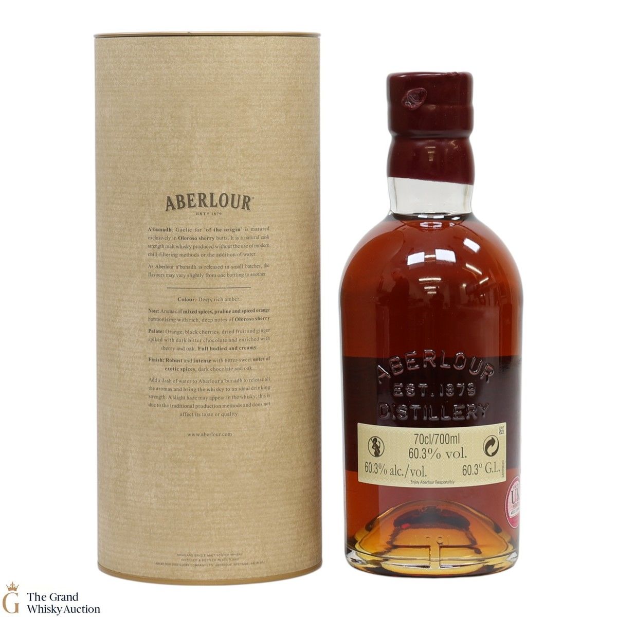 Meaning 'of the origin' in Gaelic, A'bunadh is made in homage to Aberlour's founder, James Fleming. This is batch No. 35 of the popular A'Bunadh single malt. It has been matured in Spanish Oloroso sherry butts and bottled at cask strength at 60.3% creating a dark luxurious whisky.