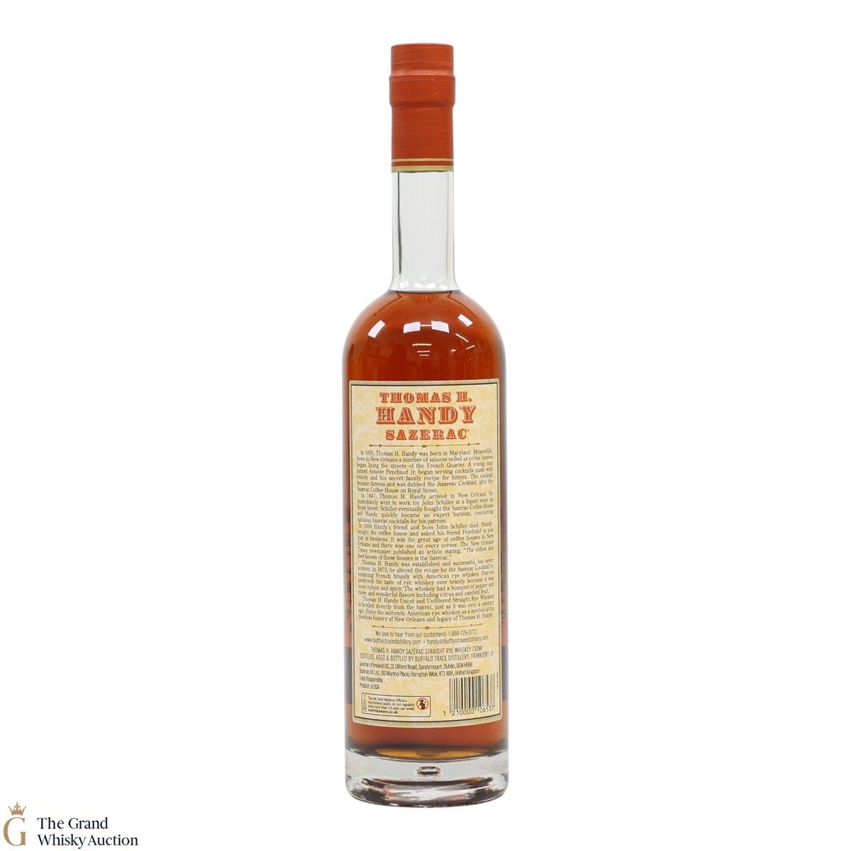 This collection is dubbed the antique collection and celebrates famous figures. The company's founder, Thomas H. Handy, is on the front of this bottle with the picture of the Sazerac Coffee House, where everything started.