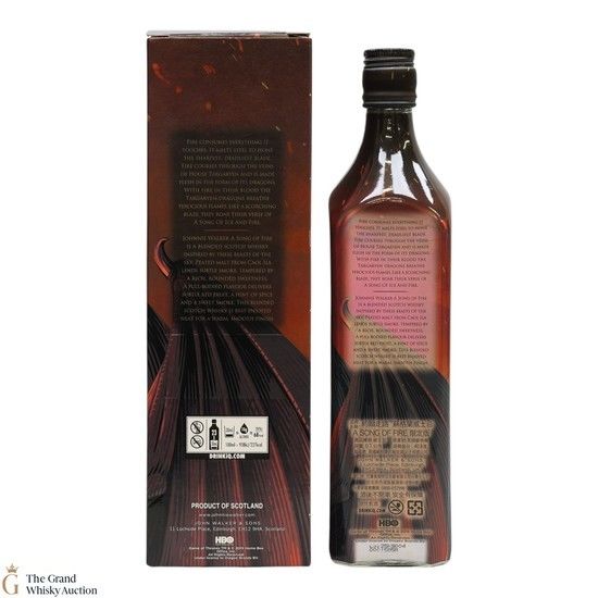A limited-edition celebration and ode to Game of Thrones, Johnnie Walker A Song of Fire. The subtle notes of the smoke and peated malts from the Caol Ila distillery within the blend pay homage to the Dragons of House Targaryen.