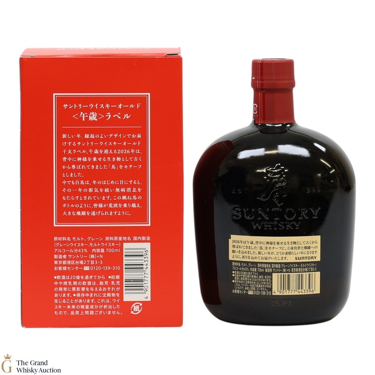 A bottle of Suntory Old Whisky celebrating the Chinese New Year 'Year of the Horse' in 2026.