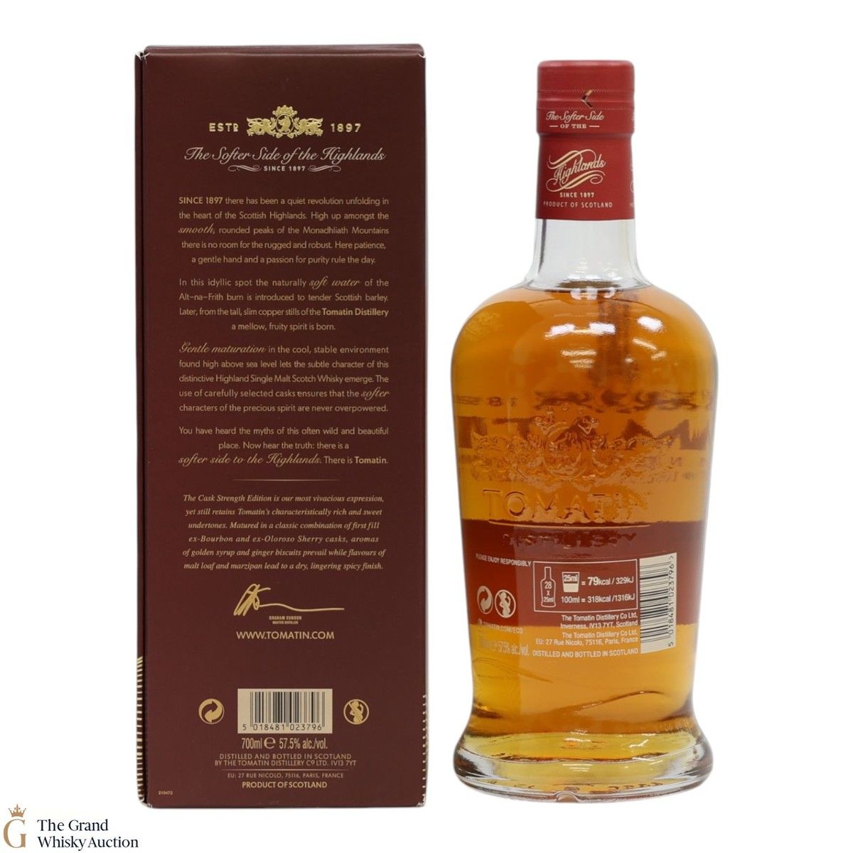 Introduced in early 2015, this is the first cask-strength bottling to join Tomatin's core range and is matured in a combination of bourbon and Oloroso Sherry casks before being bottled at a cask strength of 57.5% ABV.
