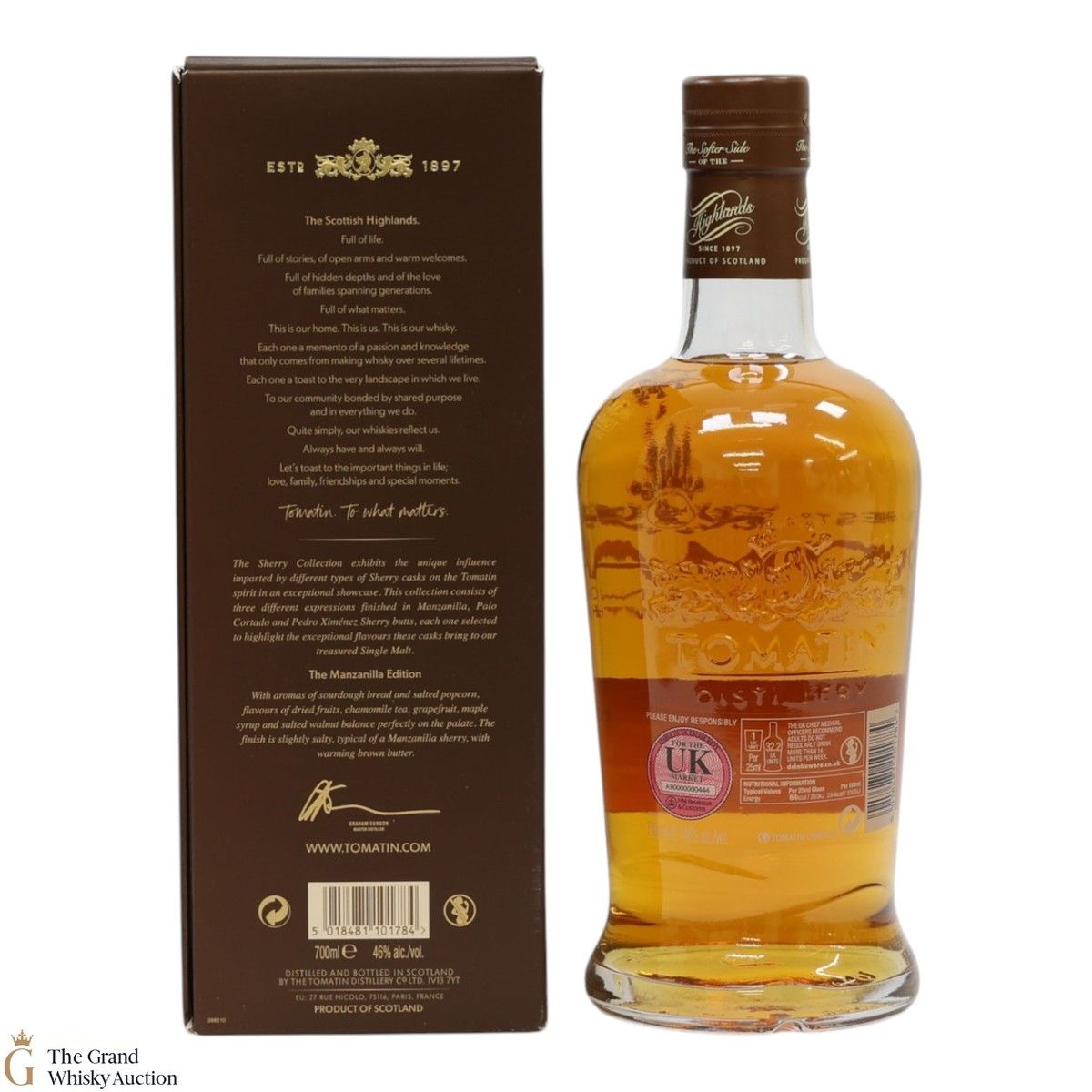One of a trio of single malts released for Tomatin's Sherry Collection in 2024, this 2014 vintage single malt Scotch whisky was aged for a decade, including a finish in Manzanilla sherry casks for two years. It was bottled at 46% ABV, non-chill filtered and with natural colour.