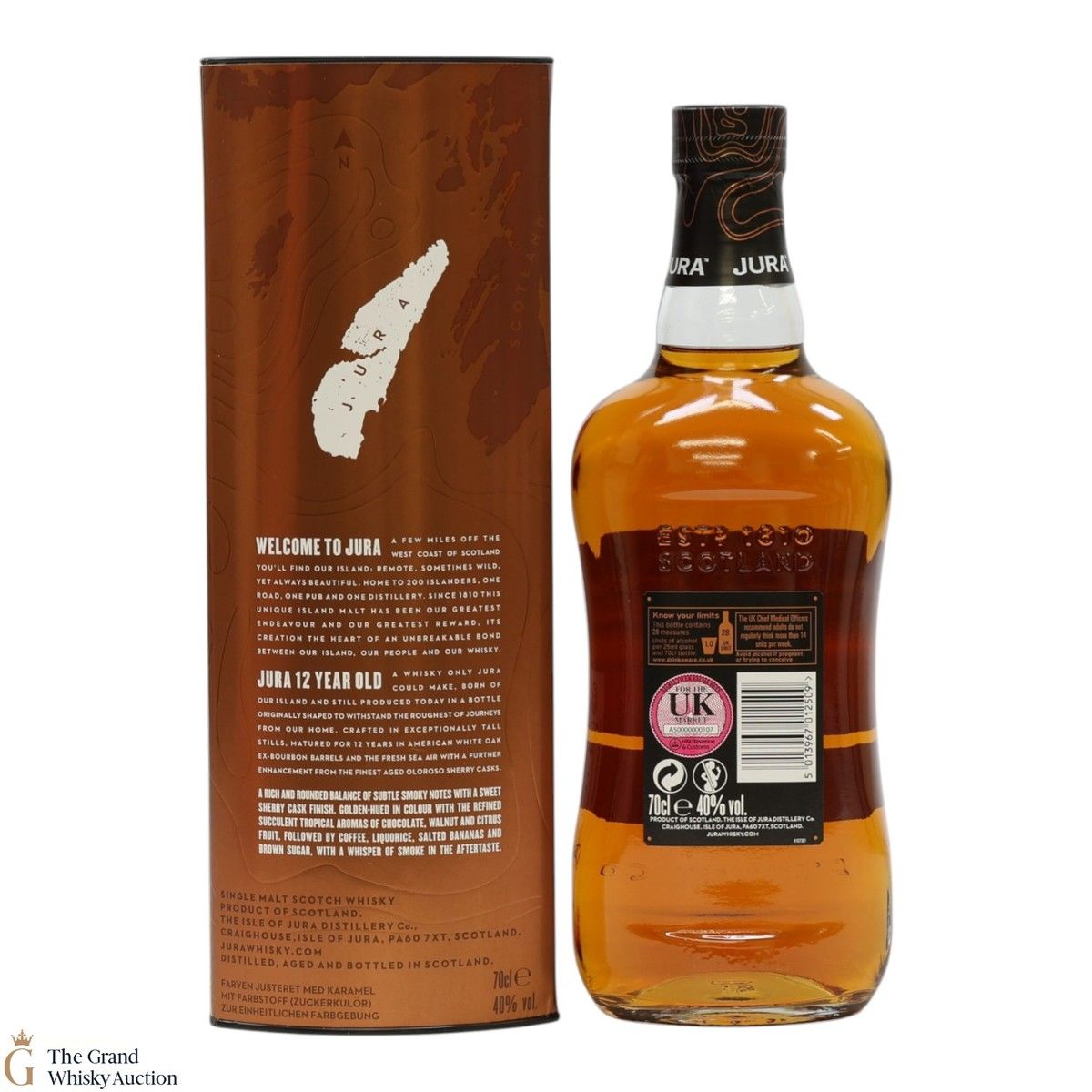 This single malt was distilled at the Jura Distillery. Aged for 12 years, and finished in a sherry cask, this was bottled at 40% ABV.